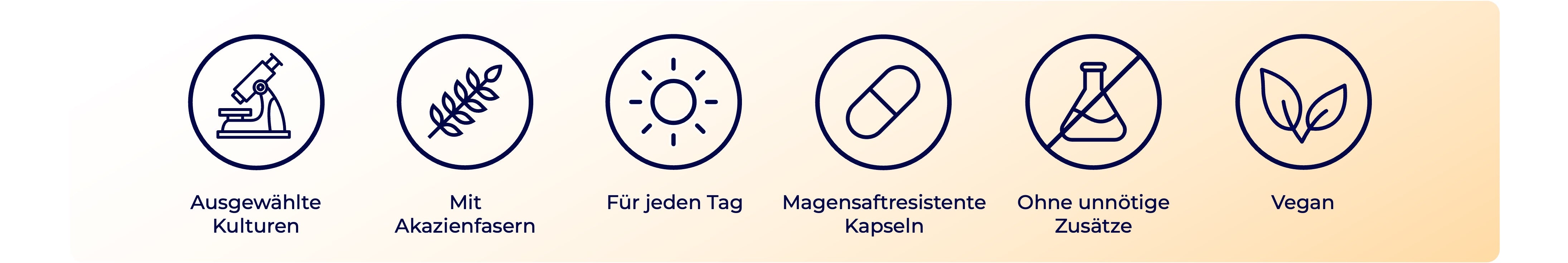 5 MILLIARDEN KBE: Jede Tagesdosis enthält 5 Milliarden koloniebildende Einheiten (KBE) in einer magensaftresistenten Kapsel. Eine durchdachte Formel, die für die tägliche Einnahme entwickelt wurde und sich einfach in den Alltag integrieren lässt.